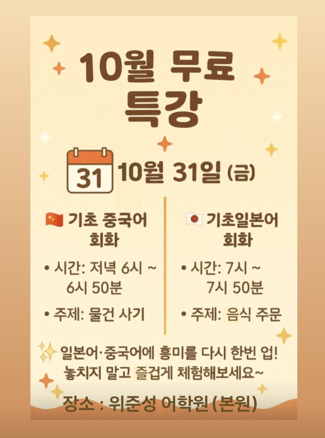 - [10월 무료 특강] 기초 회화로 시작하는 일본어, 중국어 특강