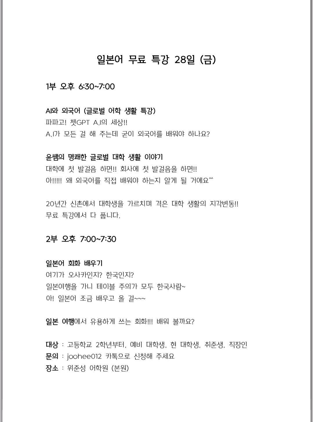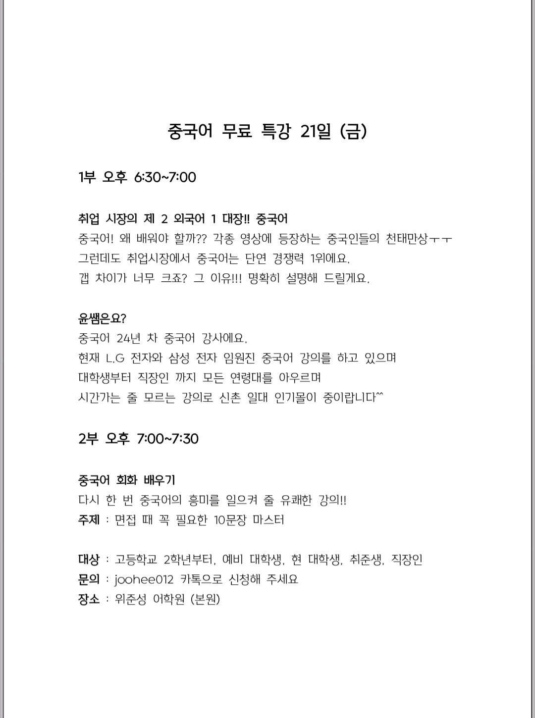 [11월 무료 특강] 기초 회화로 시작하는 일본어, 중국어 특강
